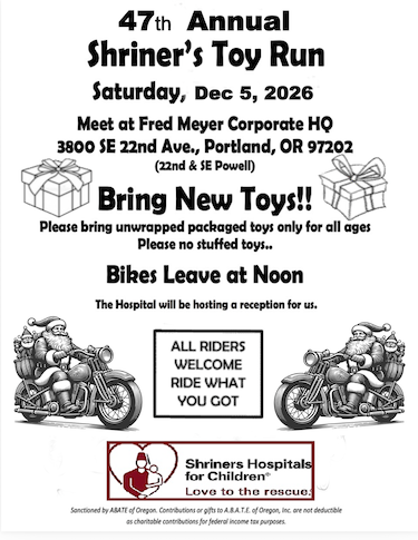 Upcoming EventsDec 5, 2026ABATE / Shriners Toy Run